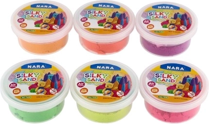 Piasek Nara Silky Sand to doskonały środek do kreatywnej zabawy i rozwijania umiejętności motorycznych. Dzieci mogą formować i kształtować niekończące się ilości form, rozwijając swoją wyobraźnię i kreatywność. Każdy zestaw zawiera sześć różnych kolorów piasku i dwa wykrawacze dla jeszcze większej zabawy.