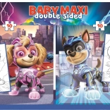 Puzzle Maxi 2x10 zawierają dwie duże układanki podzielone na 10 dużych elementów, co jest idealne dla dzieci od 2 lat. Każda układanka jest dwustronna - z jednej strony jest kolorowy obrazek ulubionych bohaterów z animowanej serii Psi Patrol, a z drugiej strony jest duża kolorowanka.