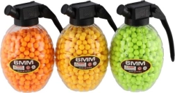 Uzupełnij swój ekwipunek o praktyczne opakowanie kulek w oryginalnym pojemniku w kształcie granatu. W środku znajdziesz 800 gumowych kulek 6 mm, które dzięki wyrazistym kolorom łatwo się odnajdują i kontrolują. Dzięki wygodnemu zamknięciu dosypiesz kulki do magazynka szybko i bez bałaganu.