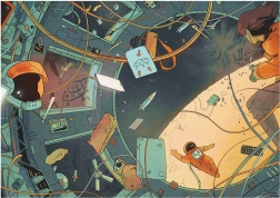Po ułożeniu obrazka czeka dalsza zabawa: szukanie 10 ukrytych przedmiotów w statku kosmicznym i na niebie pełnym gwiazd. Plakat z czytelnymi instrukcjami pomaga szybko rozpocząć zabawę – idealne zarówno do samodzielnej, jak i rodzinnej rozrywki.