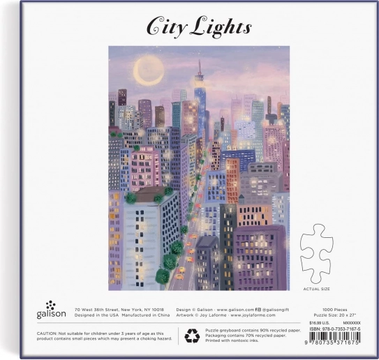 Puzzle Światła w mieście – piękny nocny motyw autorstwa Joy Laforme, 1000 elementów z materiałów z recyklingu.