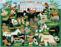Zanurz się w wyjątkowym motywie PRESIDENTIAL PETS autorstwa artystki Anne Bentley i ułóż mozaikę przypominającą słynnych pupili prezydentów USA – od owczarków niemieckich Majora i Champa prezydenta Joe Bidena po konie Johna Adamsa. Puzzle zapakowano w wyjątkowo solidne, designerskie pudełko, odpowiednie do wielokrotnego użytku i przechowywania.