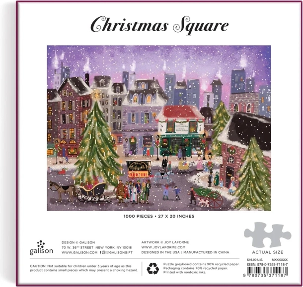 Ciesz się chwilą spokoju i nostalgii z tym świątecznym puzzle, które oferuje szczegółowy widok na świąteczną wioskę. Dzięki dużej zawartości recyklingowanego papieru oraz nietoksycznemu nadrukowi z matowym wykończeniem zapewniona jest wysoka jakość i wierne odwzorowanie kolorów. Puzzle jest zapakowane w wysokiej jakości pudełko z zrównoważonych materiałów z certyfikatem FSC®. W opakowaniu znajdziesz również obrazek instruktażowy dla łatwiejszego układania.
