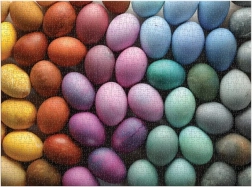 Puzzle z motywem kolorowych jaj ułożonych w płynne przejście kolorów, które tworzy wizualnie oszałamiające doświadczenie.