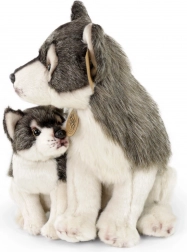 Uroczy pluszowy wilk z młodym o wysokości 27 cm zachwyci dzieci i kolekcjonerów. Oferuje mięciutki, wysokiej jakości plusz, realistyczne detale oraz praktyczne wykonanie, w którym młode jest łatwo odłączalne. Dzięki wypełnieniu z recyklingowanych butelek PET zabawka jest przyjazna dla środowiska i jednocześnie bezpieczna od 0+.