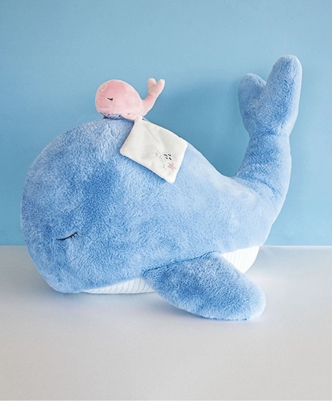 Ten mięciutki niebieski wieloryb daje dzieciom poczucie bezpieczeństwa i spokoju. Jest przyjemnie puszysty, świetnie się do niego przytula i sprawdzi się jako uroczy prezent dla noworodków i starszych dzieci. Jego subtelne wykonanie pobudza wyobraźnię i przywołuje beztroskie chwile nad wodą i w słońcu.