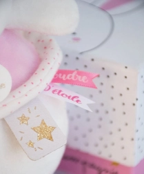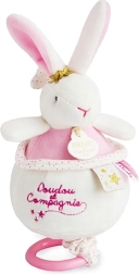 Uroczy pluszowy króliczek w różowym kolorze gra delikatną melodię, która uspokaja niemowlę w ciągu dnia i przed snem. Miękkie materiały i różne faktury wspierają rozwój zmysłów, a eleganckie pudełko prezentowe czyni z niego świetny prezent dla noworodka.