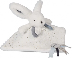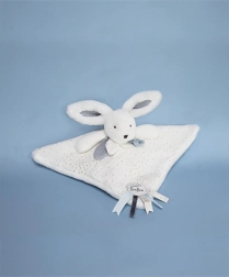 Miękki króliczek szybko stanie się ulubionym towarzyszem Twojego dziecka. Stylowy i zdobiony efektownymi wstążkami, idealny jako luksusowy zestaw prezentowy.