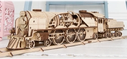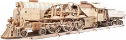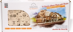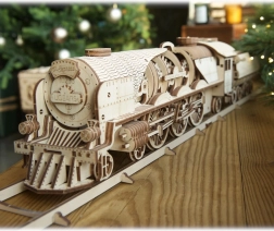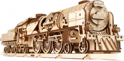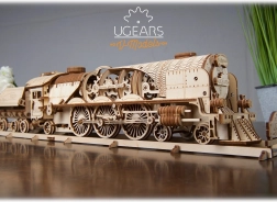 UGEARS V-Express to wyjątkowy drewniany zestaw dla wymagających, łączący urok klasycznej kolei ze sprytną mechaniką. Odsłonięty „płaszcz” lokomotywy pozwala śledzić pracę przekładni, układu kół zębatych i mechanizmu korbowego w akcji. Dzięki napędowi naciągowemu model naprawdę rusza, oferując realistyczne wrażenia z jazdy, w tym bieg jałowy i wsteczny.