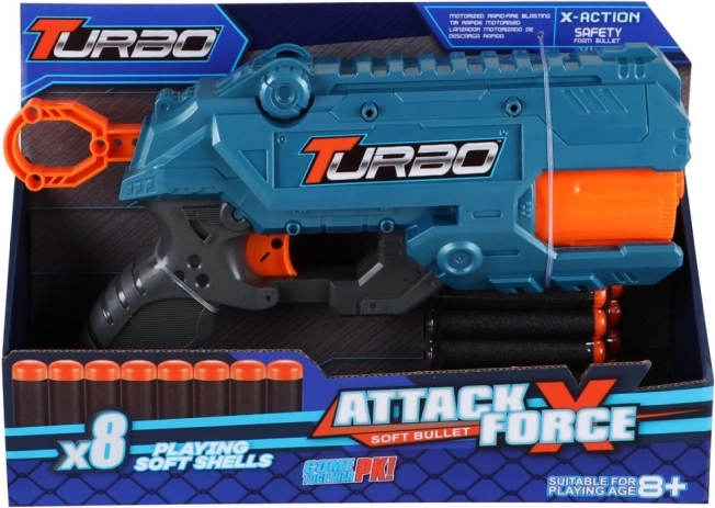 Bezpieczny miękki nabój. Miękki nabój z okrągłą główką, wykonany z piankowego materiału. 8 nabojów w opakowaniu. Zasięg strzału: 8–15 m.