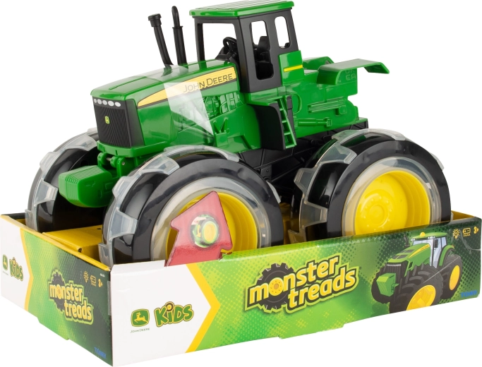 Zabawny traktor JOHN DEERE Monster marki Tomy zachwyci dzieci i rodziców dzięki swoim wielkim, przezroczystym kołom, które podczas jazdy migają zielonym światłem. Wytrzymałe plastikowe wykonanie, wierne detale prawdziwego traktora oraz łatwa jazda po równych powierzchniach czynią z tej zabawki świetnego towarzysza codziennej zabawy.