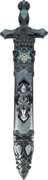 Miecz ma idealną długość 51,5 cm, co czyni go praktycznym i wygodnym dodatkiem do każdego karnawałowego lub teatralnego kostiumu.