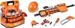 Praktyczny dziecięcy zestaw dla małych majsterkowiczów zawiera wszystko, co potrzebne do bezpiecznej zabawy i pierwszych „majsterkowych” prób. W komplecie znajduje się tekstylny pasek do wygodnego noszenia narzędzi, kask oraz bogate wyposażenie: maseczka, piłka, młoteczek, kombinerki, klucz nastawny, śrubokręt, klucz, 2 listewki drewniane, 3 śruby i 3 nakrętki.