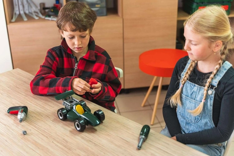 Budowanie i rozkręcanie auta jest intuicyjne i bezpieczne. Dzieci poćwiczą koordynację ręka–oko, logiczne myślenie oraz cierpliwość, a jednocześnie będą się cieszyć dynamiczną jazdą gotowym modelem. Dzięki wymiennym elementom (np. spojlerom) i naklejkom każdy mały mechanik dopasuje pojazd dokładnie do swoich wyobrażeń.