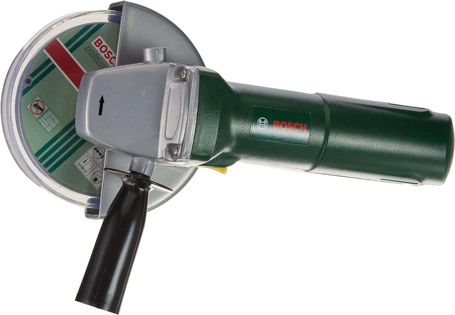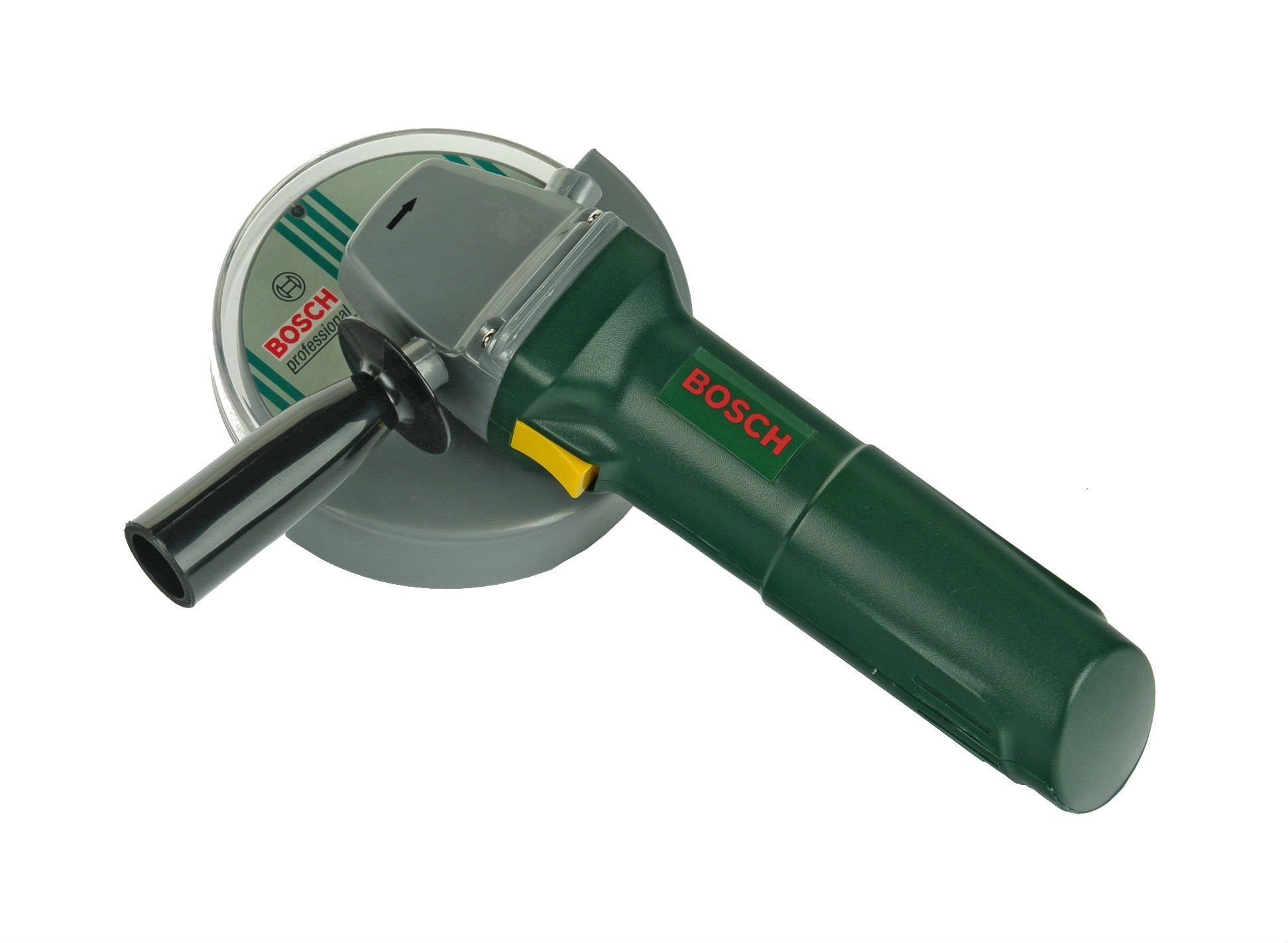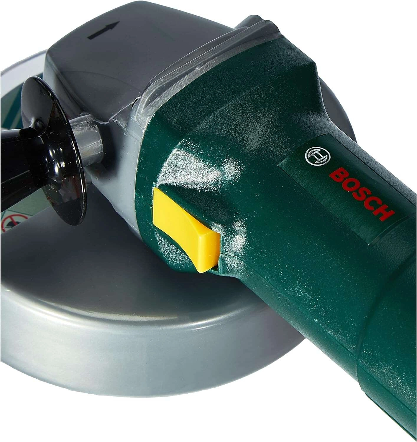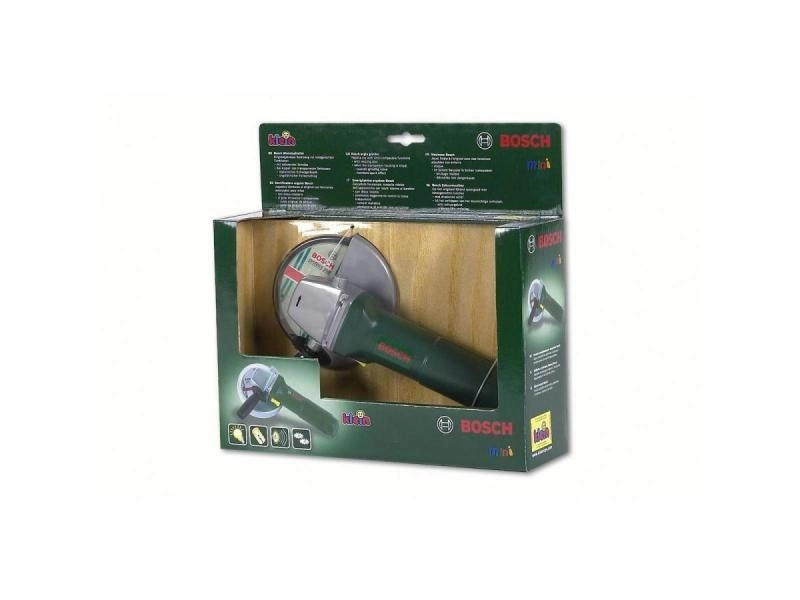 Szlifierka została solidnie wykonana z dbałością o detale, ma ciemnozielony korpus z szarymi elementami i czerwonym logo BOSCH. Dla jeszcze większej frajdy wyposażono ją w obrotową tarczę, efekt świetlny imitujący iskry oraz efekt dźwiękowy pracującej szlifierki. Idealna zabawka dla dzieci, które lubią naśladować dorosłych i chcą bezpiecznie spróbować pracy z narzędziami.