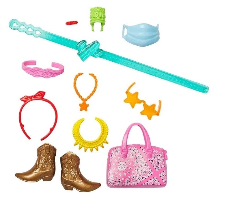 Odkryj tematyczne akcesoria dla lalek BARBIE, które wspierają kreatywną zabawę i tworzenie oryginalnych historii. Zestaw „Western Fashion – miniprzygoda” dostarcza stylu i zabawy w każdym detalu – od modnych elementów po wesołe rekwizyty. Dzięki możliwościom łączenia możesz łatwo zestawiać akcesoria z innymi kolekcjami i tworzyć nowe scenariusze zabawy.