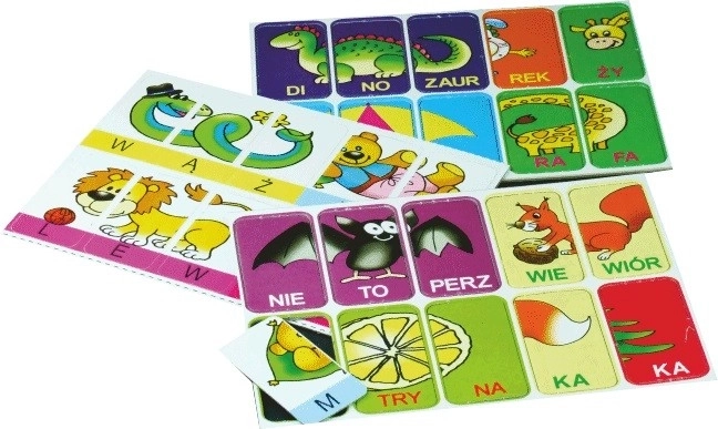 Litery i Sylaby przynoszą zabawę i naukę w jednym. Ta gra typu domino została zaprojektowana tak, aby małe dzieci cieszyły się nią podczas nauki. Dzięki niej dzieci uczą się w efektywny sposób rozpoznawania poszczególnych liter i sylab.