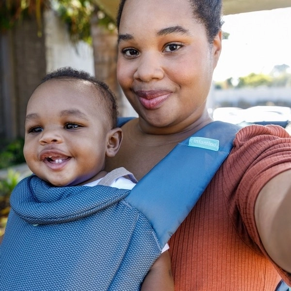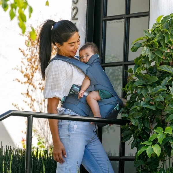 Przemyślana konstrukcja z wyściełanymi szelkami, szerokim pasem biodrowym i regulowanym podparciem głowy zapewnia komfort rodzica i dziecka. Praktyczna boczna kieszeń utrzymuje drobiazgi pod ręką, a po użyciu nosidełko można łatwo złożyć do przedniej, kompaktowej torby.