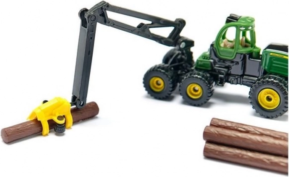 Ruchomy podnośnik umożliwia swobodne podnoszenie drewnianych pali. Gumowe opony pozwalają na swobodne poruszanie się po ręcznie przygotowanych nawierzchniach. Model wykonany jest z metalu z plastikowymi elementami. Drewniany pal jest częścią zestawu. Doskonała zabawa dla małych dzieci i atrakcyjny model kolekcjonerski.