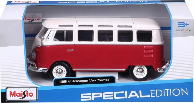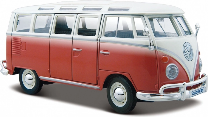 Odkryj kultowy mikrobus w postaci wysokiej jakości metalowego modelu w eleganckiej biało‑czerwonej kolorystyce. Dzięki detalicznemu wykonaniu i ruchomym częściom zyskasz realistyczne wrażenia – od otwierania drzwi po maskę. Model w skali 1:25 idealnie nadaje się do ekspozycji i do zabawy.