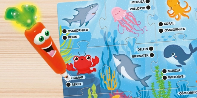 Edukacyjny zestaw Carotina oferuje zabawny i interaktywny sposób nauki dla dzieci. Zawiera 8 interaktywnych kart oraz puzzle z morskimi przyjaciółmi do odkrywania i nauki z Carotiną.