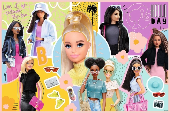 Ten zestaw puzzli prezentuje radosny motyw z ulubionymi lalkami BARBIE, który rozwija cierpliwość, koncentrację i spostrzegawczość. Elementy są precyzyjnie wycięte, a powierzchnia z kalandrowanego papieru przyjemnie odbija światło, dzięki czemu kolory i kształty lepiej się wyróżniają.
