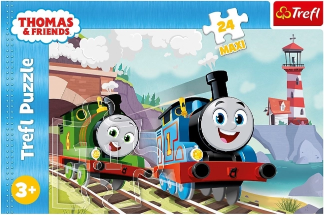 Dziecięce puzzle z motywem Thomas & Friends przedstawiają scenę „Tomek i Percy na torach” i składają się z 24 dużych elementów. Odpowiednie od 3 lat, wykonane z ekologicznych materiałów z papierem płóciennym o powłoce antyrefleksyjnej dla wygodnego układania.