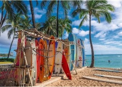 Poczuj tropikalny klimat w domu dzięki puzzlom z ikonicznym motywem plaży WAIKIKI. Elementy perfekcyjnie do siebie przylegają, powierzchnia jest przyjemnie gładka, a kolory zachwycają także po oprawieniu i powieszeniu na ścianie.