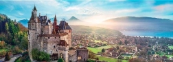 Panoramiczne puzzle z romantycznym motywem zamku Menthon nad jeziorem Annecy ucieszą miłośników pięknych widoków oraz doświadczonych układaczy. Dzięki formatowi panorama świetnie prezentują się na ścianie i staną się stylową ozdobą Twojego wnętrza.