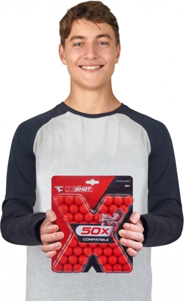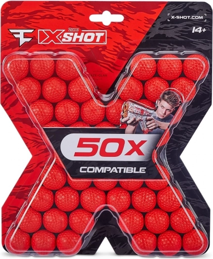 Uzupełnij zapas amunicji do swoich miotaczy X-Shot z opakowaniem 50 piankowych kulek. Kompatybilne z serią X-Shot FaZe, oferują precyzyjny lot i świetną kontrolę dzięki teksturowanej powierzchni. Idealne do intensywnej akcji bez przerywania zabawy.