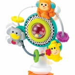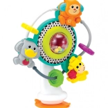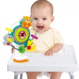 Stabilna przyssawka pozwala na bezpieczne przymocowanie zabawki do różnych powierzchni, takich jak krzesło do karmienia czy stół, co zapewnia dziecku swobodną zabawę bez zakłóceń.