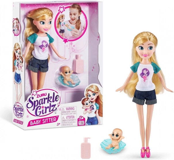 Dołącz do magicznego świata wyobraźni z Zuru Sparkle Girlz opiekunką do dziecka lalką. Ta urocza lalka jest gotowa do zabawy ze swoimi długimi blond włosami i stylowym strojem. W opakowaniu znajdziesz również małe dziecko i butelkę, co umożliwia odgrywanie różnych scenariuszy opieki nad dzieckiem. Celem jest rozwijanie kreatywności i umiejętności opiekuńczych dziecka.