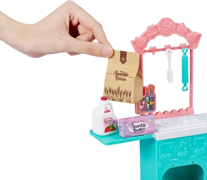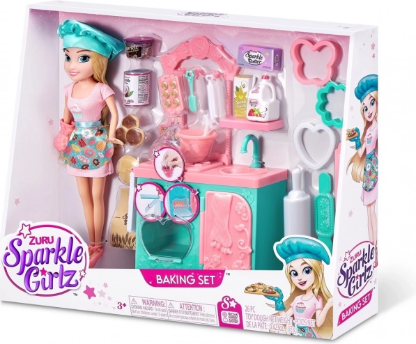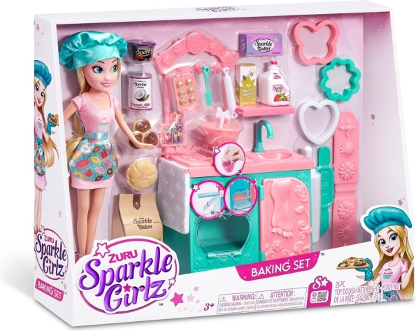 Zestaw zawiera niezbędne elementy do zabawy, w tym małe zabawkowe jedzenie, miski, szpatułki i foremki, które pozwalają realistycznie naśladować pieczenie. Otwórz piekarnik, włóż do niego ciasteczka i udawaj, że się pieką! Dzięki wymiennym ubraniom lalka może być łączona z innymi postaciami z serii Sparkle Girlz.
