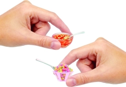 Mini miseczki, łyżeczki, kubeczki i „sosy” nadają Twoim tworom autentyczny wygląd. Idealne do ekspozycji, fotografowania i wymiany między kolekcjonerami.