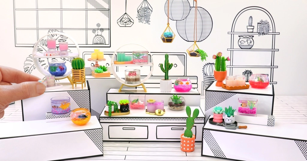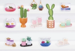 Zbieraj szeroką gamę mini materiałów, opakowań i akcesoriów – od uroczych rybek i sukulentów po stojaki i półeczki.