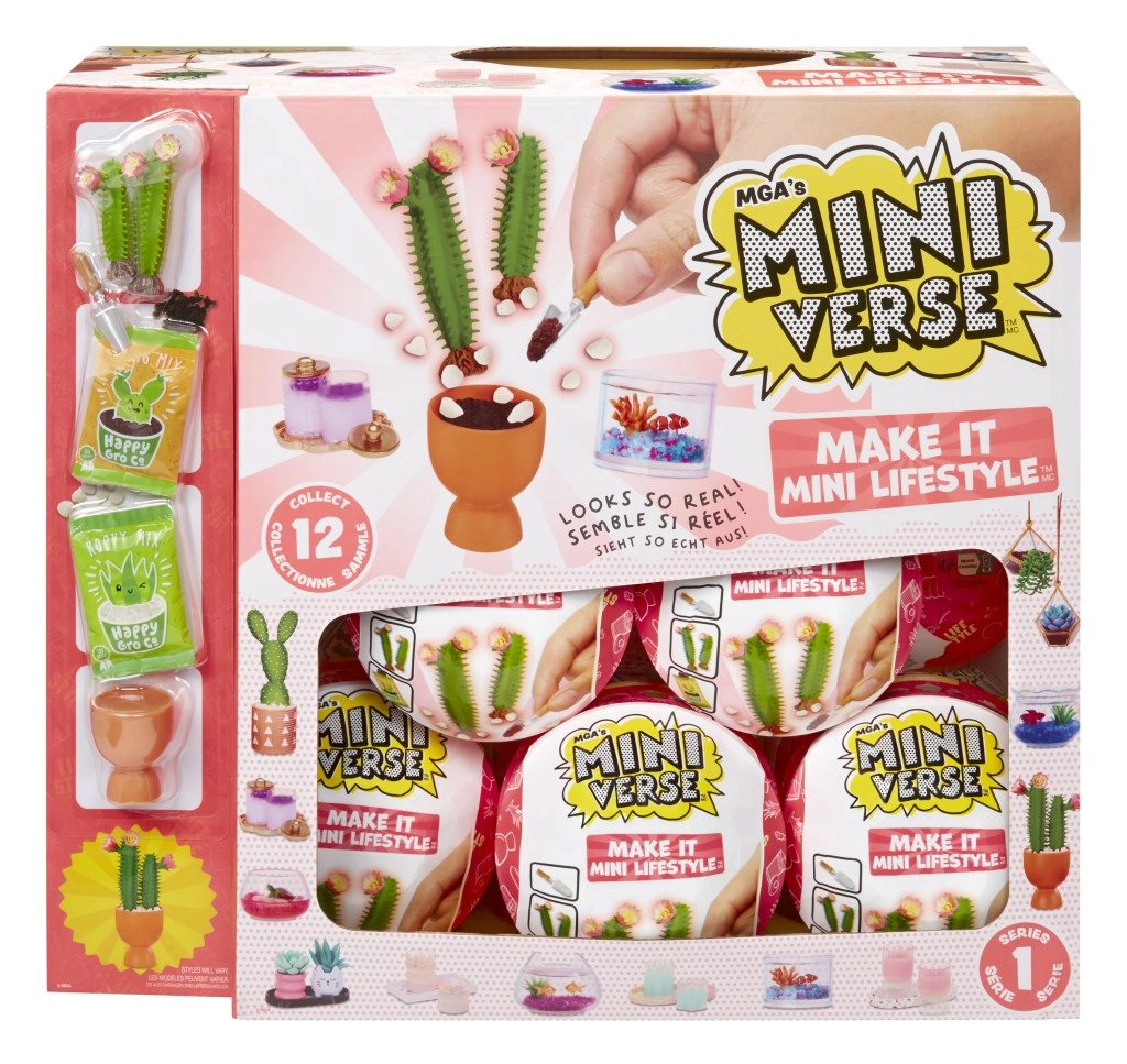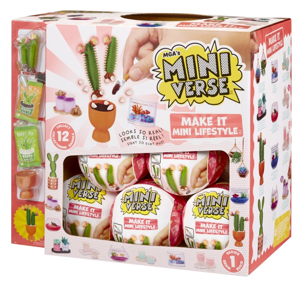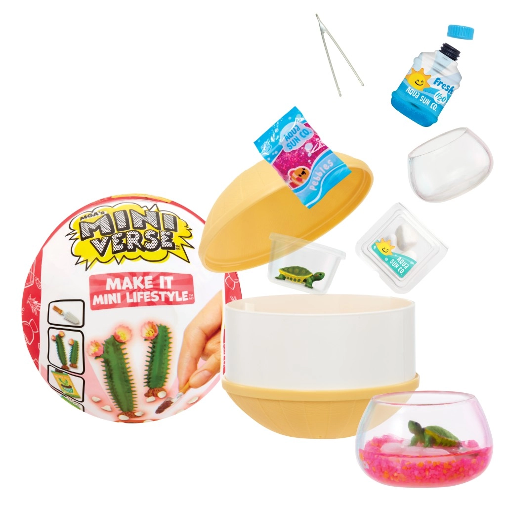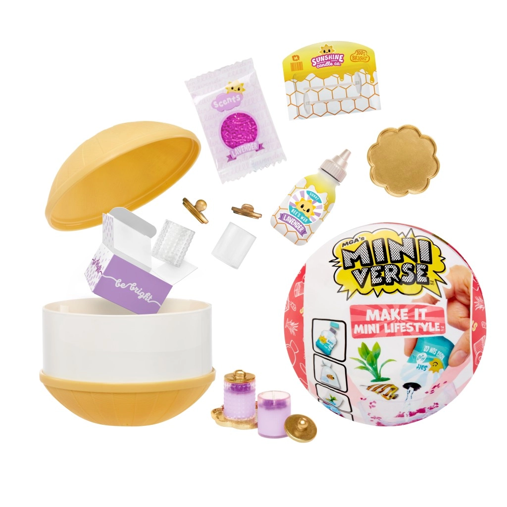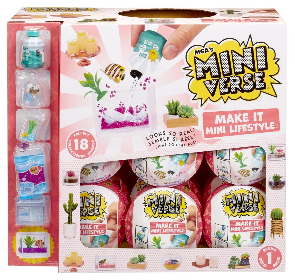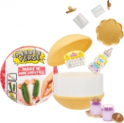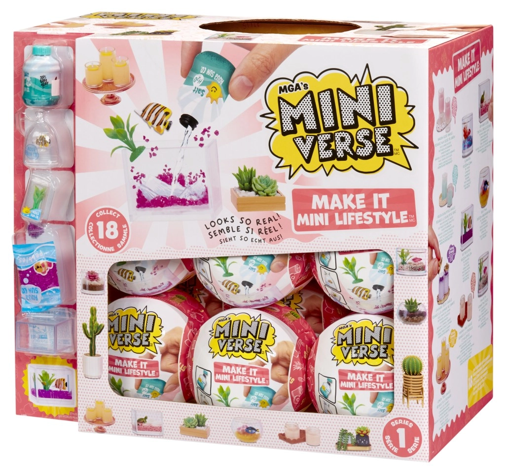 MGA's Mini Verse – Make It Mini Lifestyle to kreatywna i kolekcjonerska linia, w której tworzysz własne miniaturowe dekoracje do „mini domu”. W opakowaniu znajdziesz autentycznie odwzorowane materiały, opakowania i akcesoria – łącznie ponad 60 unikalnych elementów w Serii 1. Każde opakowanie to mystery, więc emocje z rozpakowywania są gwarantowane.