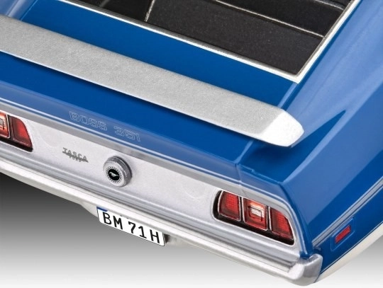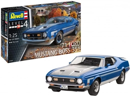 Mustang Boss 351 z roku 1971, znany jako jeden z najsłynniejszych muscle cars, imponuje mocnym silnikiem Cleveland o pojemności 5,8 l.Zestaw modelu plastikowego Revell nie zawiera farb ani kleju.