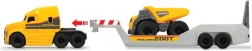 - Ciężarówka MACK z platformą, wywrotka, ładowarka kołowa VOLVO