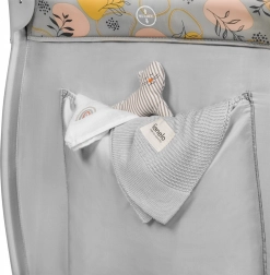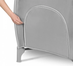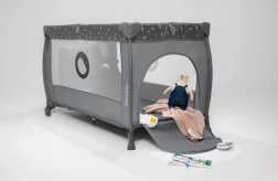 Łóżeczko służy także jako kojec z zamykanym wejściem oraz praktyczną boczną kieszenią na zabawki.