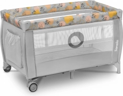 Łóżeczko wyposażone jest w siatkę dla optymalnej cyrkulacji powietrza, co także umożliwia rodzicom łatwe monitorowanie dziecka. Praktyczna boczna kieszeń jest idealna do przechowywania ulubionych zabawek, a zamykane na zamek boczne wejście do kojca zwiększa jego funkcjonalność.