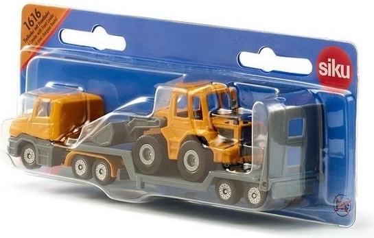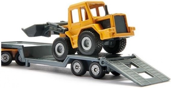 Przyczepa z metalowych i plastikowych elementów dostosowana do transportu ładowarki SIKU.