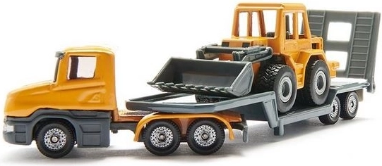 Specjalna ochrona i gumowe opony zapewniają wygodny i bezpieczny transport maszyny. Zestaw zawiera ładowarkę z ruchomymi częściami na gumowych kołach. Atrakcyjna zabawka dla najmłodszych będzie urozmaiceniem każdej zabawy.