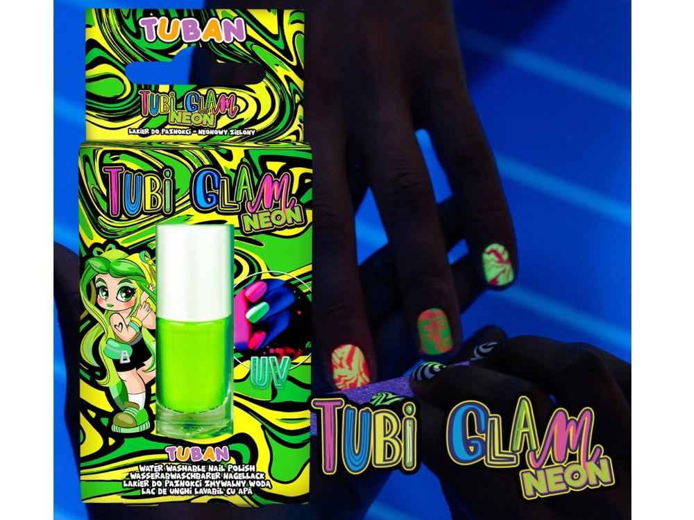 Nowość w postaci neonowych lakierów do paznokci TUBI GLAM to letnia propozycja marki TUBAN przeznaczona dla młodych dam, które śledzą aktualne trendy. Lakiery TUBI GLAM NEON zachwycają intensywnymi, neonowymi kolorami świecącymi w świetle UV – żółtym, różowym i zielonym.