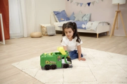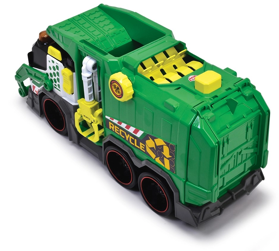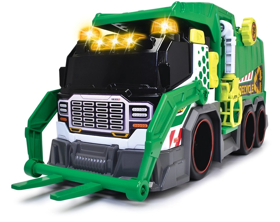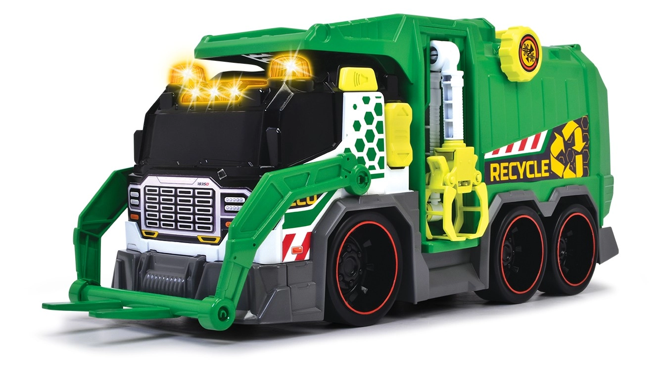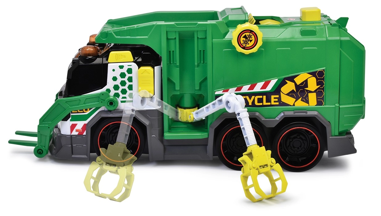 ŚmieciarkaŚmieciarka ze światłem i dźwiękiem. Wyposażona w automatyczny podnośnik koszy na śmieci, chwytak/kleszcze, mechaniczną zapadkę do odpadków oraz w zestawie znajduje się kosz na śmieci.