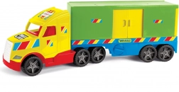 Duża plastikowa ciężarówka Wader Magic Truck Basic Kontener jest stworzona dla małych kierowców. Dzięki starannemu wykonaniu przypomina prawdziwy zestaw ciężarowy i oferuje wiele scenariuszy zabawy w domu i na zewnątrz. Fluorescencyjne światła po naświetleniu świecą w ciemności, więc zabawa trwa także wieczorem.