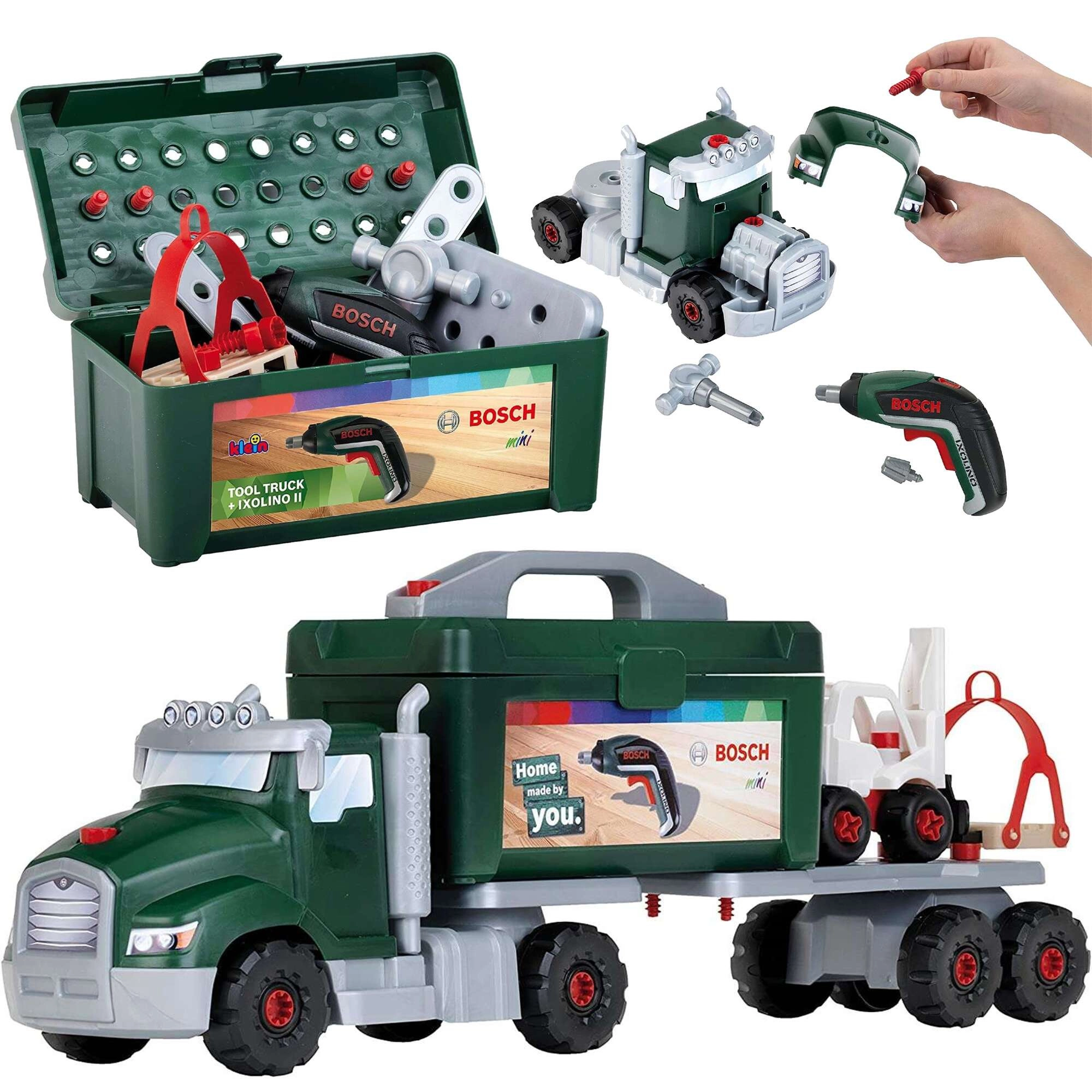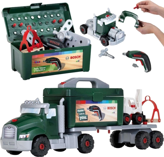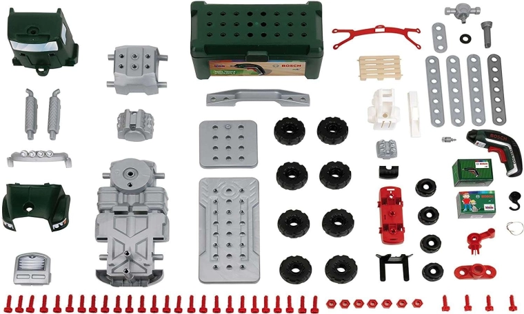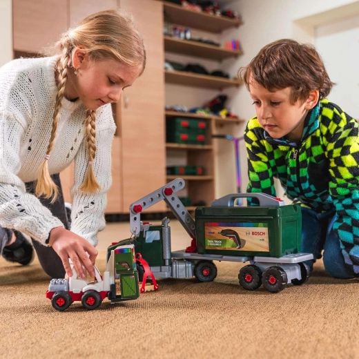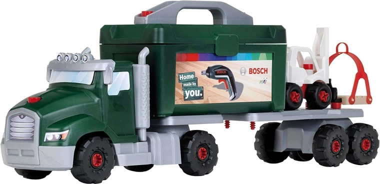 Dziecięcy zestaw konstrukcyjny składana ciężarówka BOSCH marki Klein oferuje niemal nieskończone możliwości zabawy. W opakowaniu znajdziesz 86 elementów, w tym zdejmowany box na narzędzia, przyczepę, dźwig, wiertarkę oraz mały wózek widłowy. Dzieci ćwiczą zręczność, logikę i wyobraźnię, a dzięki solidnemu wykonaniu zestaw zapewni lata zabawy.