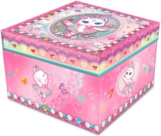 Urocza pozytywka z motywem kotki baletnicy zachwyci dzieci i dorosłych. Po otwarciu figurka zaczyna się obracać, a rozbrzmiewa klasyczna melodia. Pozytywka ma lusterko i miejsce na drobiazgi, działa dzięki mechanicznemu naciągowi i nie wymaga baterii.
