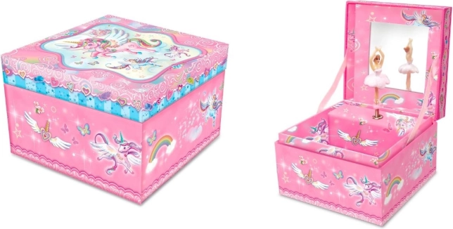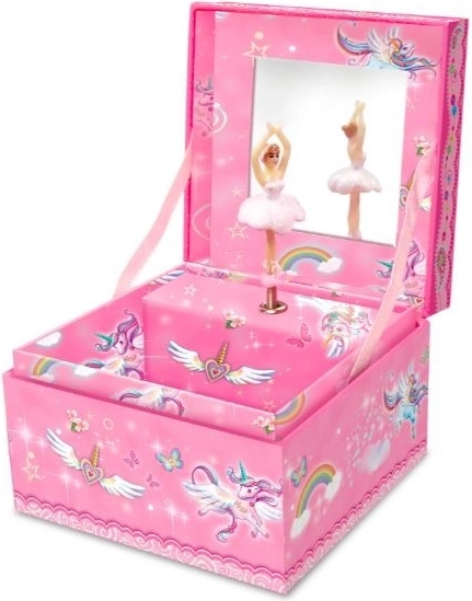 Ta piękna szkatułka z motywem jednorożca jest idealna do przechowywania małych skarbów i biżuterii. Gdy tylko otworzysz pokrywę, jednorożec zacznie tańczyć do klasycznej melodii. Po zakończeniu melodii wystarczy nakręcić mechanizm do ponownego odtworzenia.