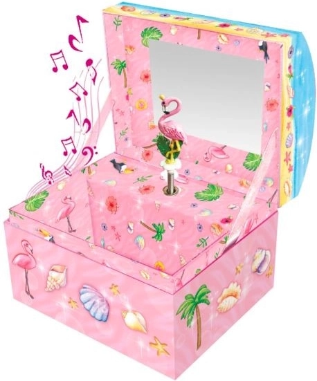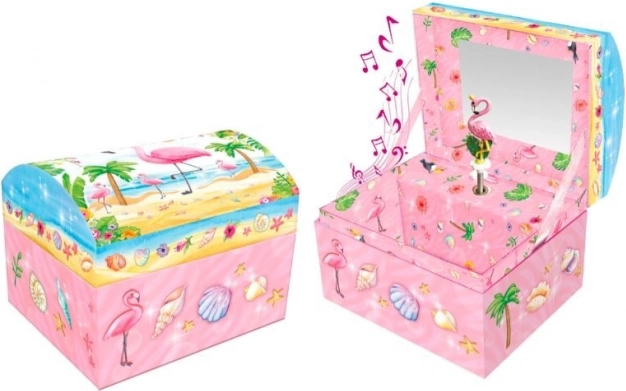 Pozytywka Pecoware z motywem flaminga odtwarza klasyczną melodię, którą uruchomisz prostym obróceniem, i odsłania schowek na małe skarby.