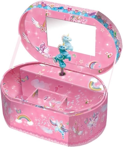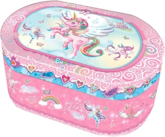 Szkatułka zawiera lusterko do kontroli wyglądu oraz osobną przegródkę na przechowywanie małych skarbów. To czyni ten produkt doskonałym dodatkiem do każdego dziecięcego pokoju lub jako piękny prezent dla miłośników jednorożców.